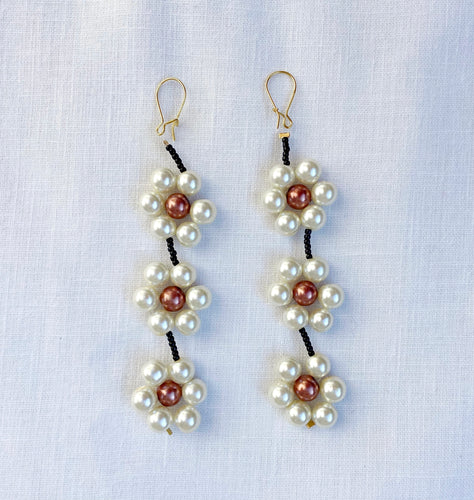 Mocha Beaded Daisy Earrings
